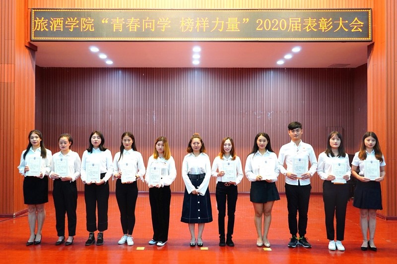 在酒店1801班学生带来激情饱满的朗诵《致•夏》后,便是优秀学生代表张月阳发言。张月阳以她四年的学习与工作经验,衷心祝愿我院学子们“以梦为马,不负昭华”。本次表彰大会在这一段段画面的剪影中,在这一声声激励的回响中迎来高潮,颁奖环节由此展开。