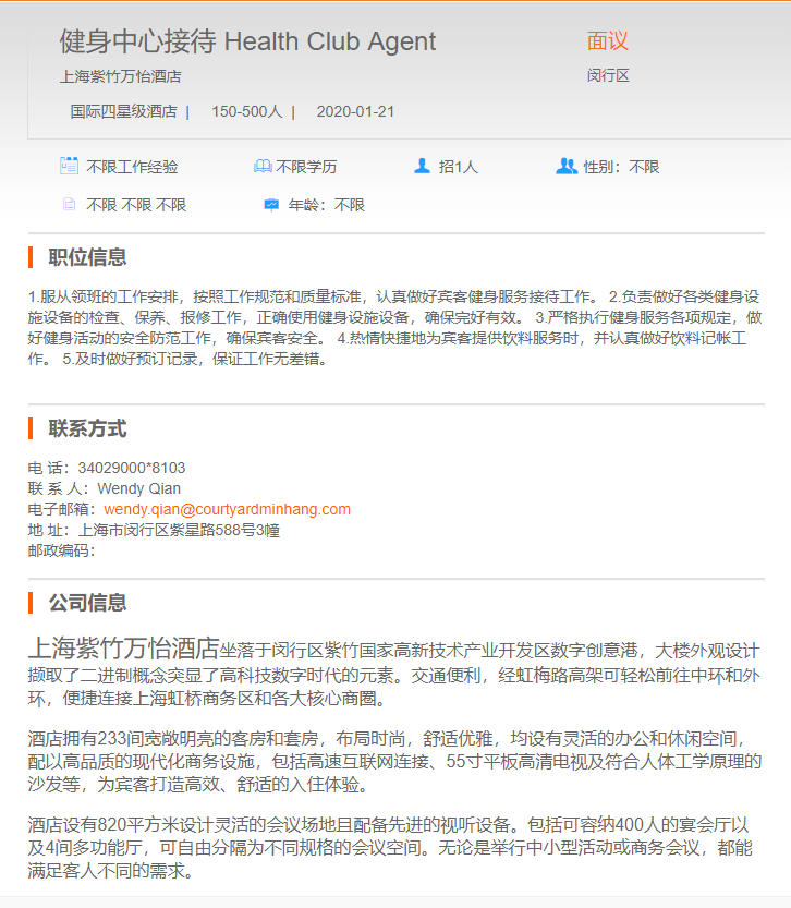 上海紫竹万怡酒店健身中心接待