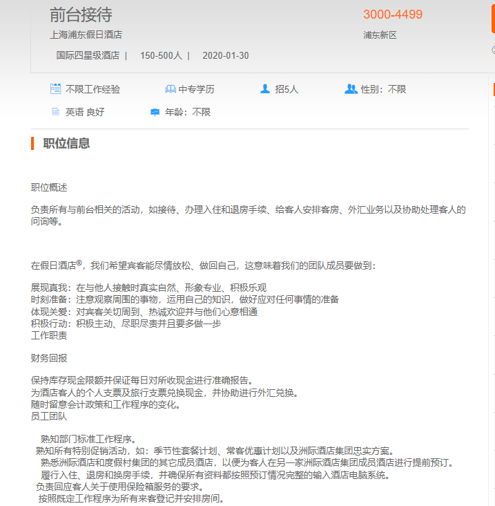 上海浦东假日酒店前台接待