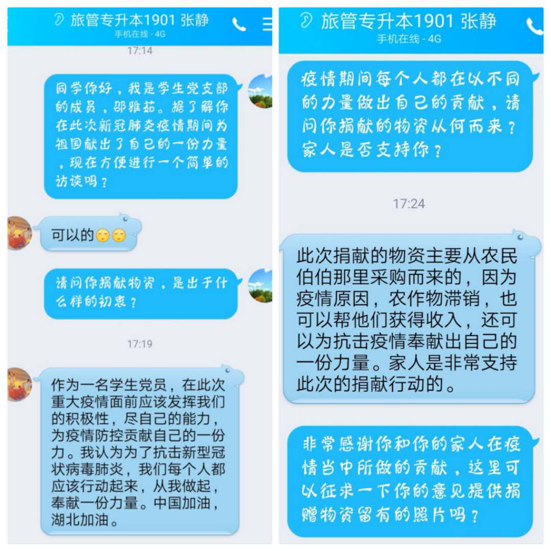 自新冠肺炎疫情蔓延以来,我院学生党支部深入学习贯彻习近平总书记的重要讲话精神,为打赢疫情防控阻击战做出贡献,我院学生党员第一时间响应号召,让党旗在疫情防控战役中高高飘扬。我院现对积极响应国家号召、捐献物资的学生党员进行了专题采访。