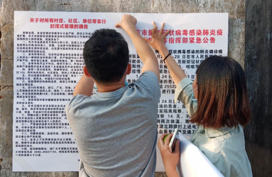 为响应习近平总书记“社区是疫情联防联控的第一线”的号召,我院返乡大学生主动请战,参与疫情防控。自1月31日起,于海南省东方市东河镇玉龙村中,在东河镇主席、玉龙村领导及其干部带领下开展为期16天的疫情防控活动,现已圆满完成。包括我院旅游管理1803班符桂英同学在内的玉龙村大学生志愿者们积极配合参与。