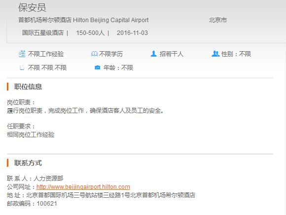 首都机场希尔顿酒店保安员