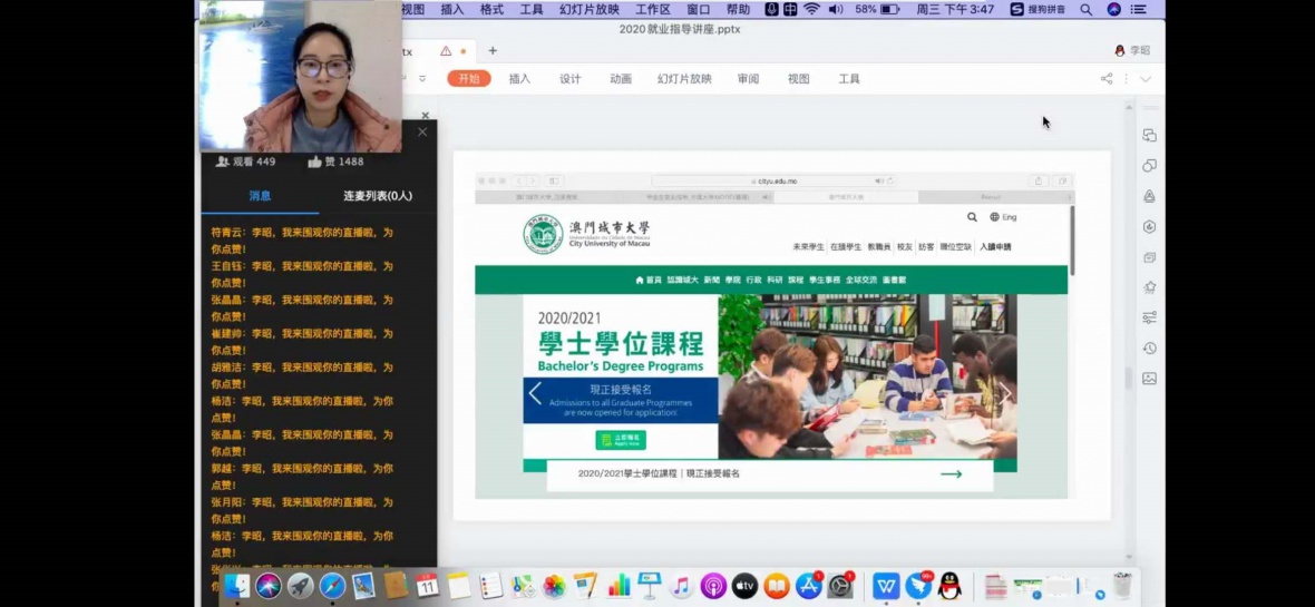 我院李昭老师在钉钉平台召开2020年“就业or升学”讲座,聚焦学生现阶段对于未来自身发展的焦虑,从就业、升学两个方面分析并给出相应指导。在就业方面,李昭老师从分析疫情下各大行业的发展,疫情后人们将会从事职业的变化以及近期国家出台的就业政策这三大模块展开了讲解,为我院毕业生缓解就业焦虑,指明就业方向。在升学方面,李昭老师就考研及报考公务员方面进行了讲解,其中她重点介绍了境外报考研究生的事项,为我院有考研意愿的毕业生又提供了多一种选择。李昭老师表示,在此疫情发展的特殊时期,无论毕业生是选择就业还是升学,都不要过分担心疫情对我国经济的影响。要始终相信我们会战胜病毒,“春天”一定会到来,届时我院学子一定会在更高的邻域大放异彩,为我院创造全新的光荣战绩。