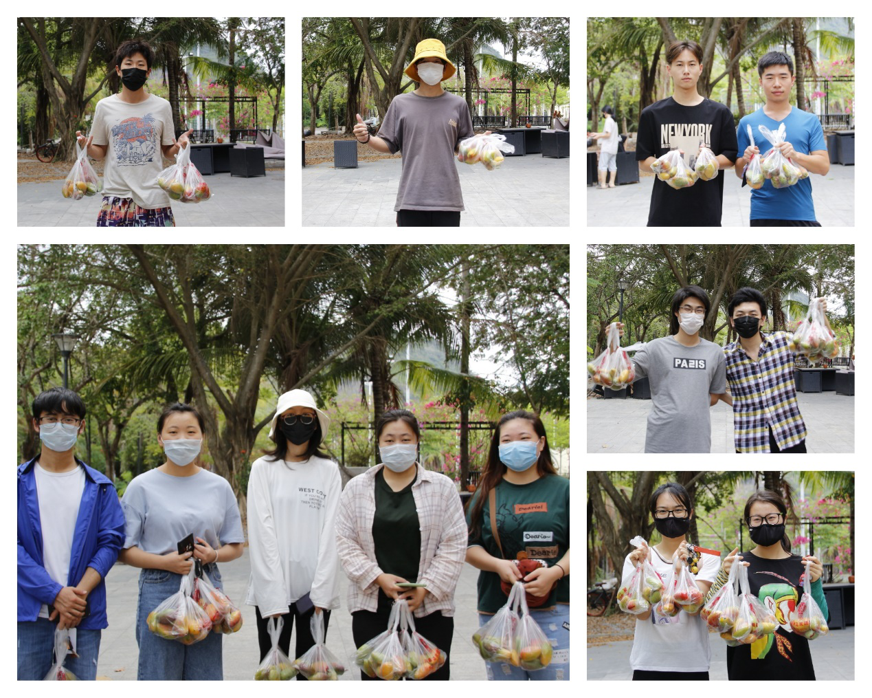为保证同学们的安全,学校暂时不让出入,感谢这位学长给我们带来了暖心的芒果,心意收到了,让即使没有回家的我们也感受到了如家般的温暖!非常感谢!还有大中午帮忙分发的老师同学