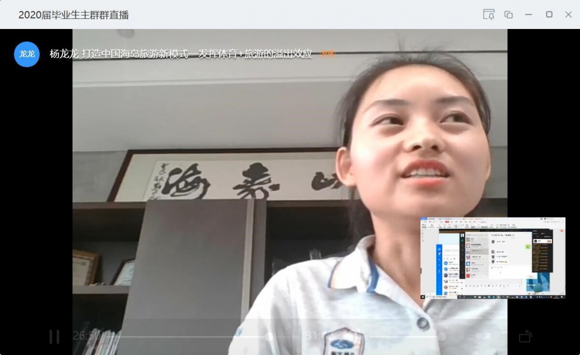 此次分享会上,校友段丽珠对蜈支洲旅游区的概况、环保理念、发展历程以及五员文化等特色进行了详细的介绍,行业或企业的创新与发展,本质还是以服务为重。在介绍蜈支洲岛水上运动项目的独到之处,着重讲解了体育+旅游融合发展的特色产物,海天飞舞、动感飞艇等娱乐项目是紧跟市场前沿动态、满足新业态下游客需求从单一观光向深度体验转变而产生的项目。目前,水上运动项目的收入占整个景区收入的40%,不单成为景区发展的新引擎,也成为吸引游客的一大亮点。通过对景区一些大受游客喜爱的“网红”打卡点着重强调了创新精神的重要性,表示其对于未来个人突破和企业发展都起到不可或缺的作用,并鼓励学生们保持对发现和思考的热情。