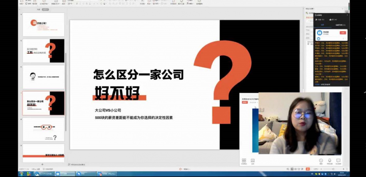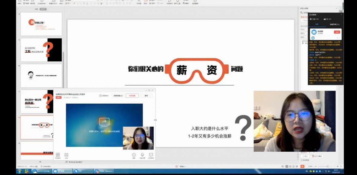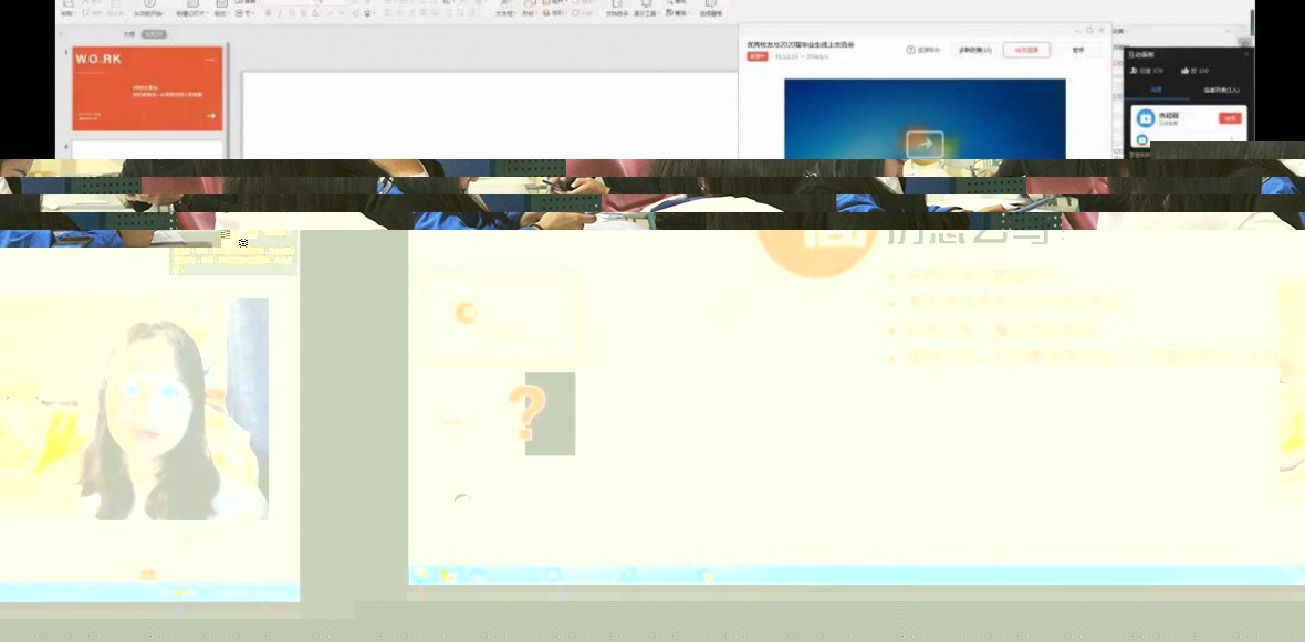 为我院2020届毕业生明确职业发展方向,提高求职面试技巧,3月25日晚8时,我院邀请了14级优秀校友练超颖在线上与我院学生分享求职经验分享,我院思想导师石玲老师组织线上交流会,2020届毕业生积极参会。