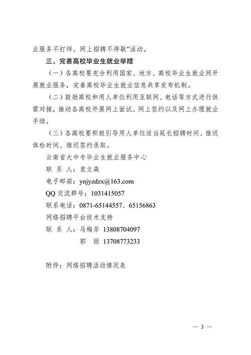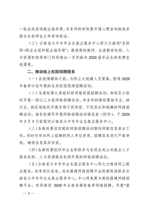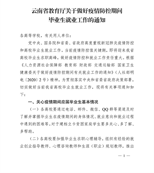 2月24日,云南省教育厅发布《云南省教育厅关于做好疫情防控期间毕业生就业工作的通知》,相关事项如下:
