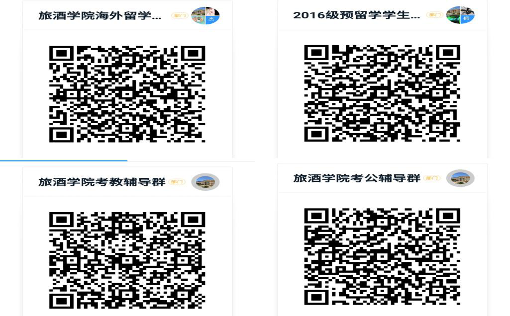 我院各年级考研辅导群和18级、19级报考导游证辅导群二维码