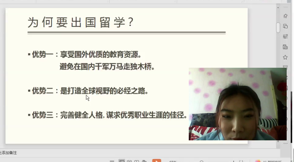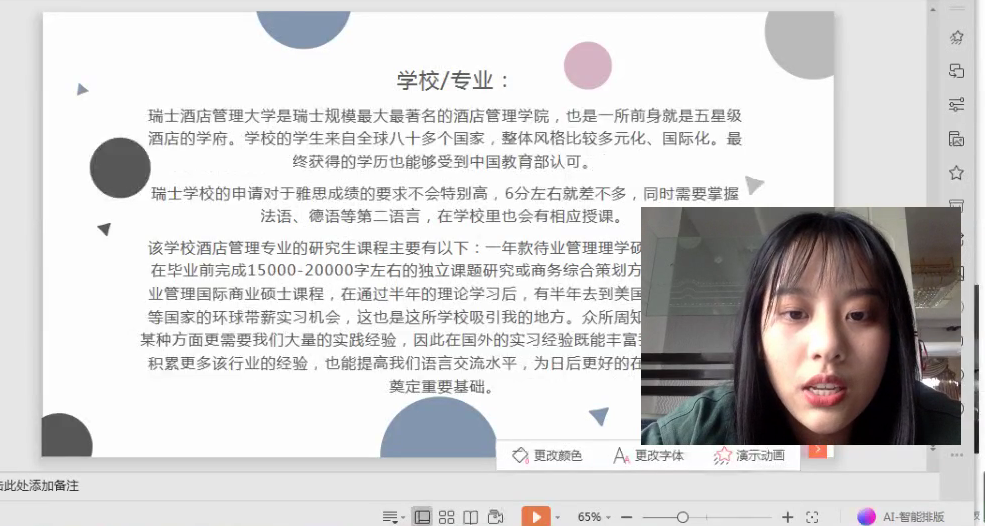 酒店1601张雪儿进行留学分享