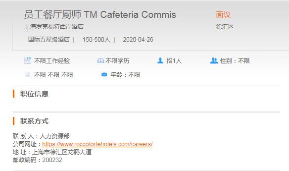 上海罗克福特西岸酒店员工餐厅厨师