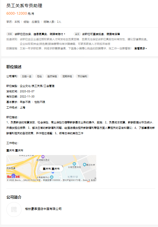 (格林豪泰酒店(中国)有限公司)员工关系专员助理