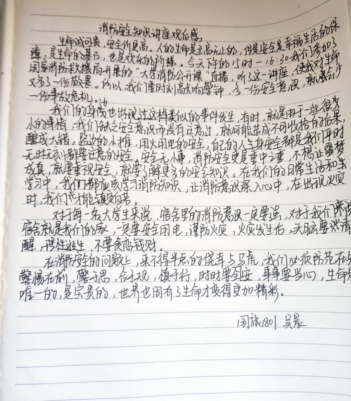 4月9号下午3点,应急管理部消防救援局通过网络直播方式开展“大学消防公开课"直播活动,当时的微博可谓是相当的“热闹”,1000多万人在直播间学习消防相关的知识。本次直播由“中国消防”官方微博通过网络直播方式开展,采取现场讲授、播放案例、组织演练、互动问答等方式,内容贴近校园实际、丰富翔实。通过还原2019年桂林雁山区造成多名大学生伤亡的“5.5”火灾现场,讲解了逃生知识和注意事项。模拟学生在宿舍使用“热得快”烧水、大动率电器做饭等场景,讲解火灾危险性;模拟教师在实验室因操作不当引起燃烧等场景,讲解了实验室消防安全注意事项;介绍广西师范大学食堂消防安全管理经验;模拟图书馆火灾正确处置程序等活动,国旅1801班的同学们也在思想导师曹添地带领下观看了本次直播,直播结束后,一些同学还将直播的收获与感想通过文字的形式表达出来。