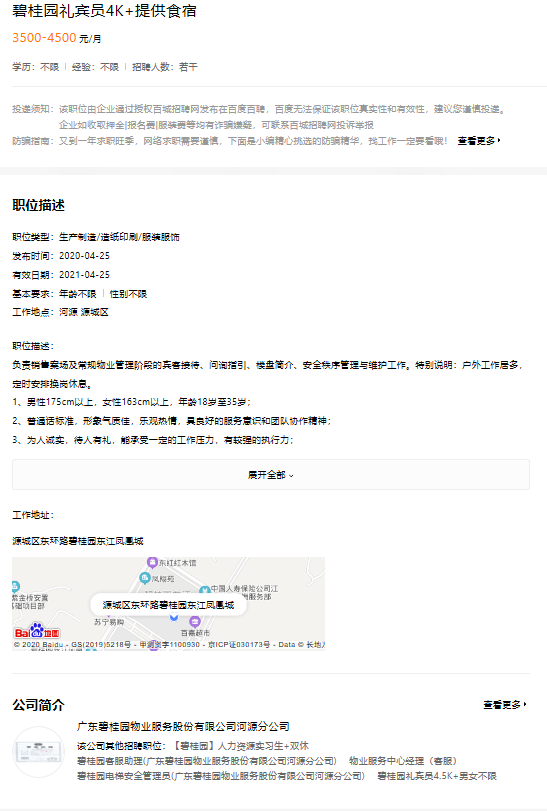 碧桂园礼宾员4K+提供食宿