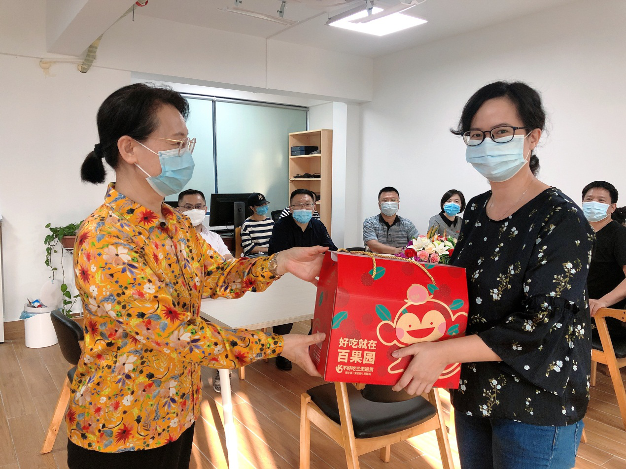 杨玉英院长代表学院赠送果篮慰问并肯定行政职员
