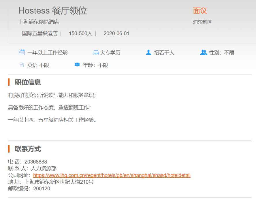 上海浦东丽晶酒店餐厅领位