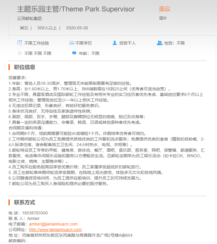 云顶邮轮集团主题乐园主管
