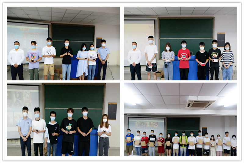 我院第一届王者荣耀联赛的颁奖仪式在书知楼1208教室进行。由我院党总支副书记王翔和思想导师李湘婷、王曦茜、刘文琦为前八强战队颁奖,并送上属于他们的奖品后合影留念。“美团外卖队”在谈及获奖感言时,"只有团队互相信任才能走到最后,团队默契度也是胜利的关键点"。