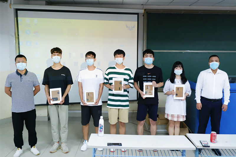 我院第一届王者荣耀联赛的颁奖仪式在书知楼1208教室进行。由我院党总支副书记王翔和思想导师李湘婷、王曦茜、刘文琦为前八强战队颁奖,并送上属于他们的奖品后合影留念。“美团外卖队”在谈及获奖感言时,"只有团队互相信任才能走到最后,团队默契度也是胜利的关键点"。