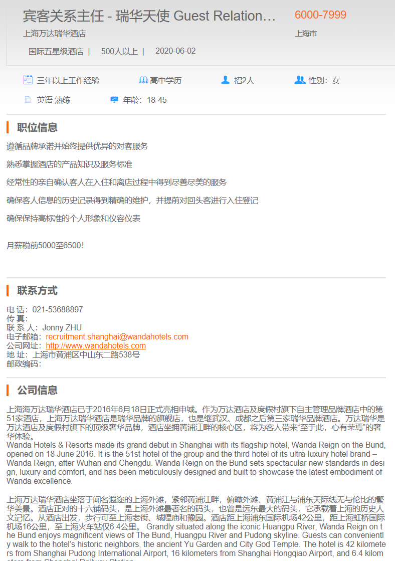 上海瑞华酒店 宾客关系主任-瑞华天使