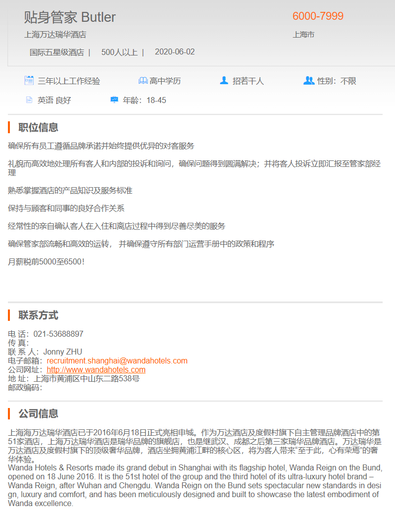 上海瑞华酒店 贴身管家