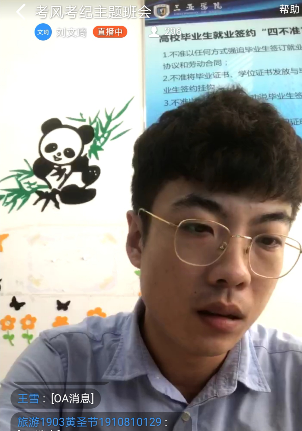 刘文琦老师在给我们开关于考风考纪的主题班会
