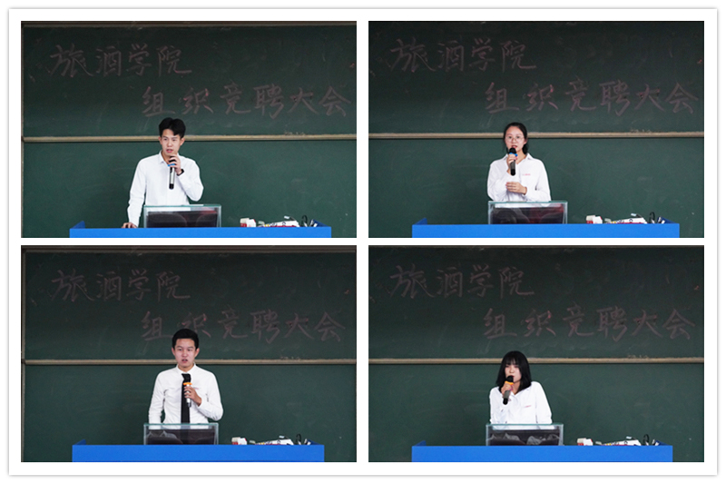 组织竞聘大会旨在鼓励四大组织成员积极参与竞选,发掘组织中的潜在人才,不断推动组织进步,优中择优,增强组织核心优势。本次大会依照团委、学生会、自律委员会、通讯社的顺序依次进行竞聘宣讲。四个组织的竞聘成员分别从工作成绩、工作不足、工作思路、未来规划等方面竞选宣讲,表述自己对工作的热爱和自身积极负责的工作态度。会议期间,团委副书记李琴对竞聘干部进行仔细地记录点评。