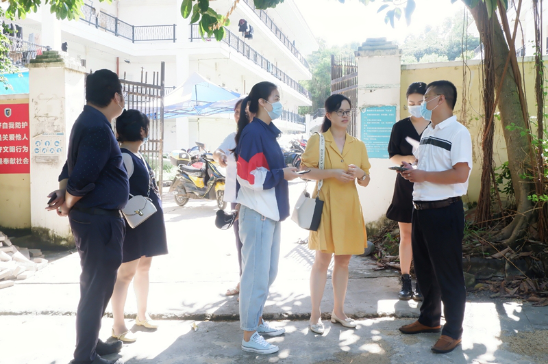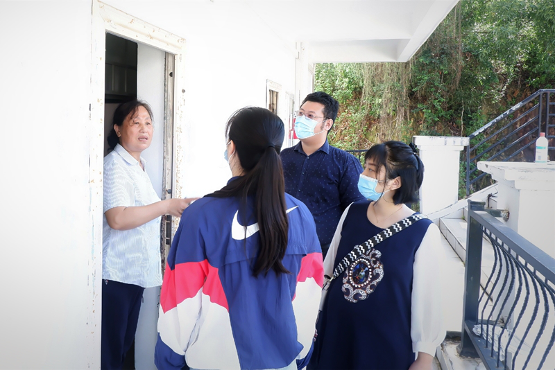 党总支副书记王翔与团委副书记吴小柳、李琴,曹添老师叮嘱学生记录宿舍情况