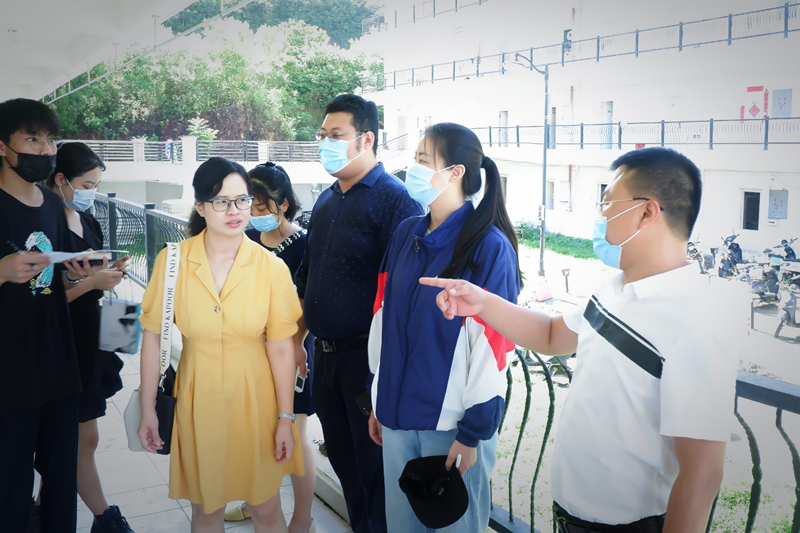 老师们走访了南一并仔细查看宿舍内的设施完好程度以及水电等方面的问题,并做好相关记录,遇到设施问题严重的宿舍拍照记录。王翔书记强调检查要全面、要小到细节,例如桌椅是否配套、门窗是否能牢固、灯管是否能亮,另外重要问题要单列出来,以便及时地上报给学院后勤部,尽快解决问题。