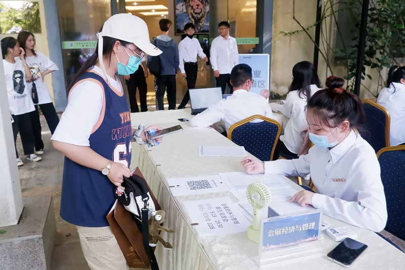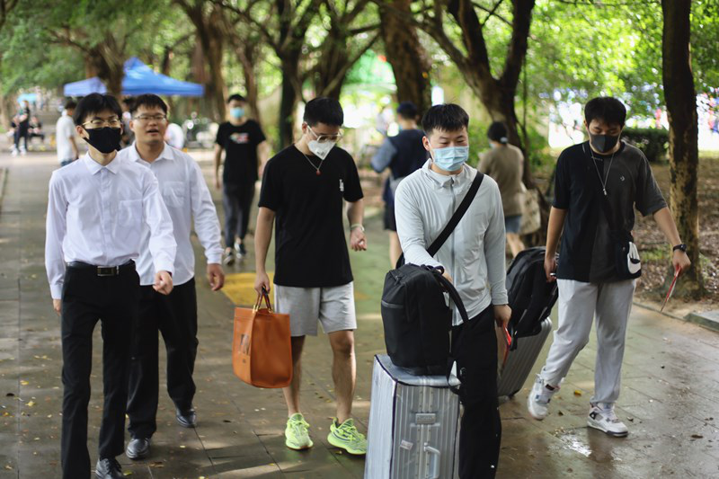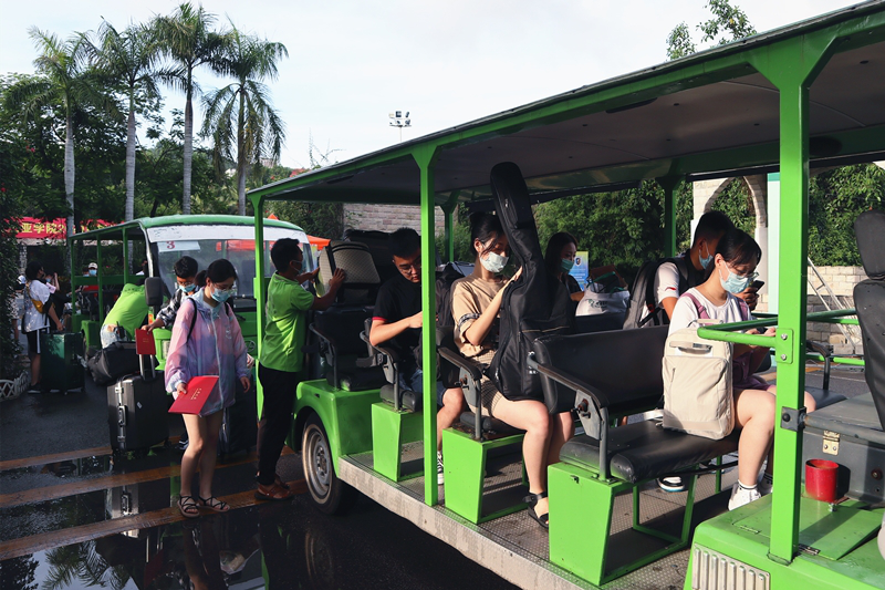 凤凰木上停留着蜻蜓,玻璃瓶里插满小小森林,青春嫩绿得很鲜明。旅酒学院2020级新生于9月12日上午在白鹭苑陆续报到,白茶清欢无别事,我们在等风也在等你。