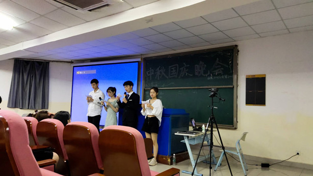 晚会从四个主持人对国庆节与中秋节的介绍中展开。在他们的介绍中,我们可以深深的感受到祖国是如何变得强大,家人团圆是多么地美好。他们精彩的叙述,勾起了同学们对祖国的报国热情以及对家人的思念。