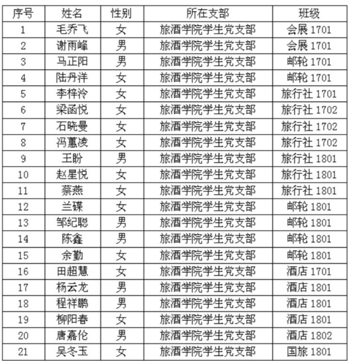 为了进一步增强发展党员工作的透明度,严格组织发展工作程序,防止不正之风,确保发展新党员的质量,拟发展下列同志为中共预备党员,特此公示。