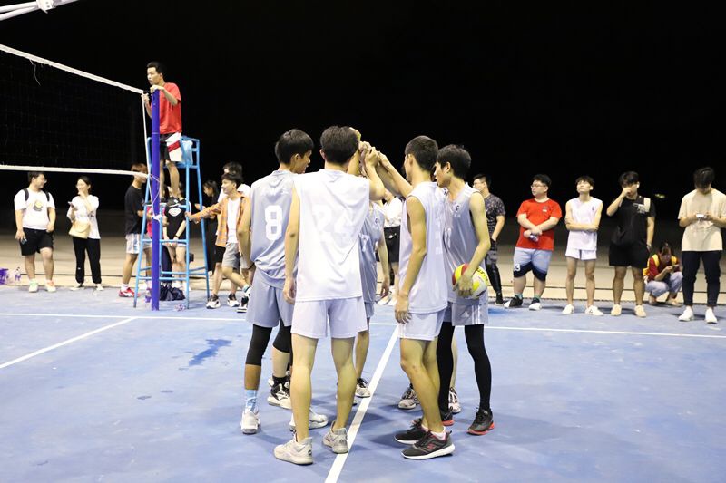 在加时赛过程中的比赛更是精彩绝伦,双方队员似乎都受到了决赛的影响,纷纷拿出十分的专注力,场上一度出现比分相持不下的状况,球员们互不相让,都在充分展示自己的排球技巧,力争能在比赛中获得胜利。我院队员们在赛场上挥洒汗水,奋力拼搏,虽然最后我院比分落后于体育学院,输掉了此次男子排球,但我院队员们不气馁并互相拥抱打气,相信下次比赛会取得好的成绩。
