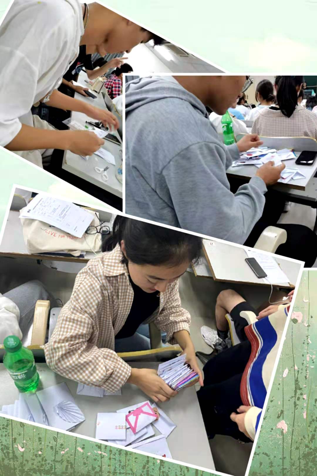 为保证本次班会内容丰富、节奏紧凑,方便向同学们普及心理健康知识,班委们提前一周开始做准备。我班心理委员俞浩然同学撰写详细的策划案,班委们手工制作了信封,亲手写下对同学们的祝福和鼓励。