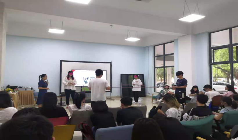 讲座中,黄老师邀请了四名同学参与互动体验活动——盲人方阵,并询问参加者当时的内心感受,通过这个活动环节向学生们说明想顺利完成目标需要的是互相配合,并从中感受到团队成员给予的力量。此外,她还向学生分享了人际沟通技巧的六个方面:打开心扉与阳光心态、尊重与倾听、保持沟通与换位思考、合作比竞争重要、保持沟通与交往的弹性、拥抱内在小孩。