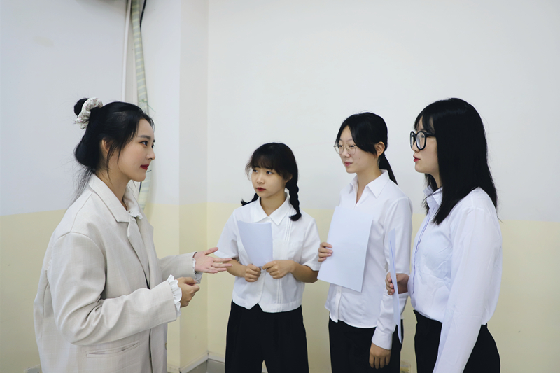 本次模拟面试活动由实景演练与专业指导两部分组成。面试实景演练中,参与学生角色扮演面试官与应聘者,围绕求职意向、个人优势、职业发展规划等内容沟通交流,随后根据学生的回答情况,思想导师从沟通表达能力、逻辑思维能力、临场应变能力等方面为学生进行打分并为其提供相应的指导。