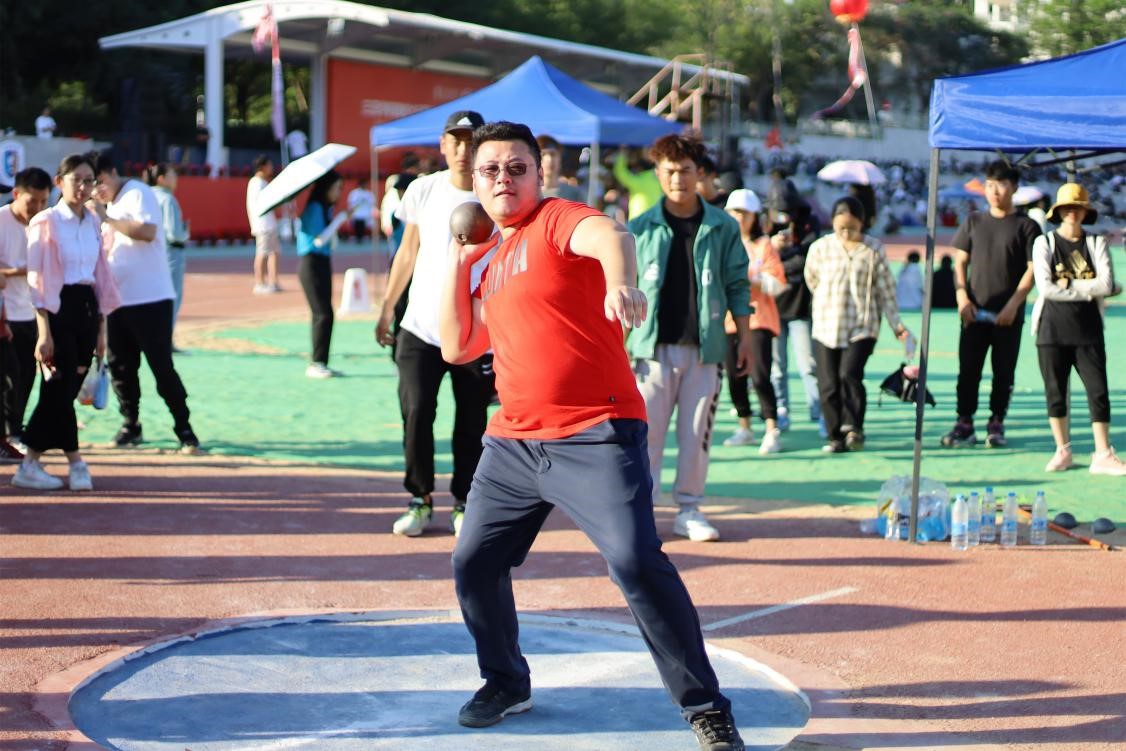 曹添老师在比赛中细心观察参赛老师的投球动作,精彩的投球表现博得场上观众阵阵掌声。功夫不负有心人,最终曹添老师不仅进入了总决赛,并以7.10米的距离取得了教师组男子铅球决赛第六名的好成绩。侯明帅老师也取得了不错的成绩,为我院体育比赛增添色彩。