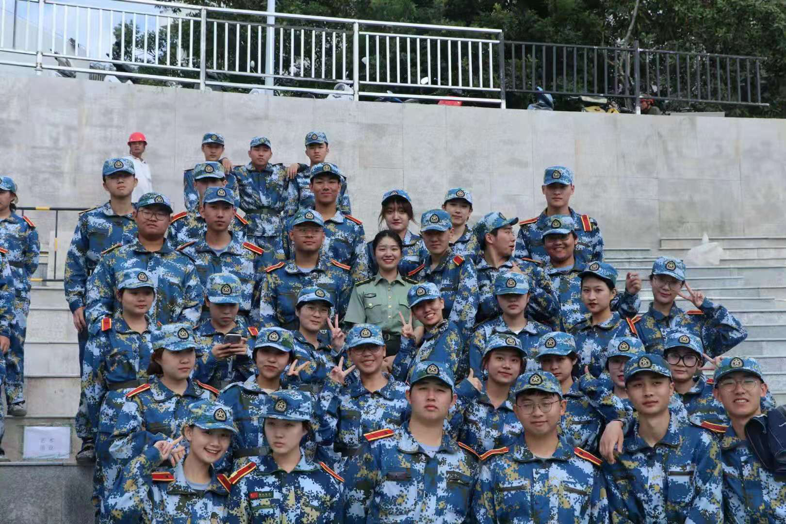 旅游管理1901班黄敬虔同学在军训时与大一学生的合照