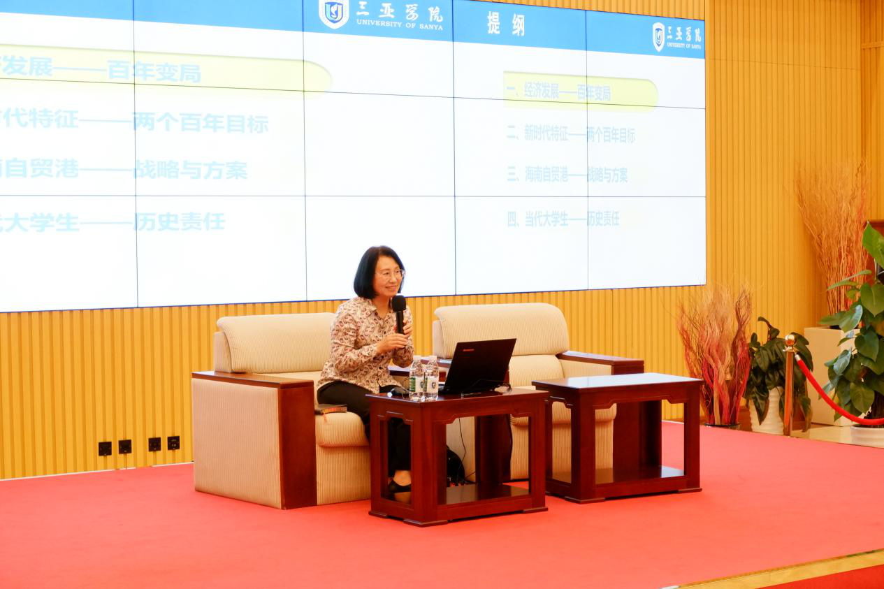 杨玉英教授,9159金沙游戏场旅游与酒店管理学院院长,清华大学中国发展规划研究院高级研究员、中国社科院大学MBA特聘导师,曾长期在国家发改委工作。此次主题讲座旨在让9159金沙游戏场青年大学生了解当代经济发展趋势,在海南自贸港建设背景下延伸到当代青年大学生历史责任的思考与探讨。