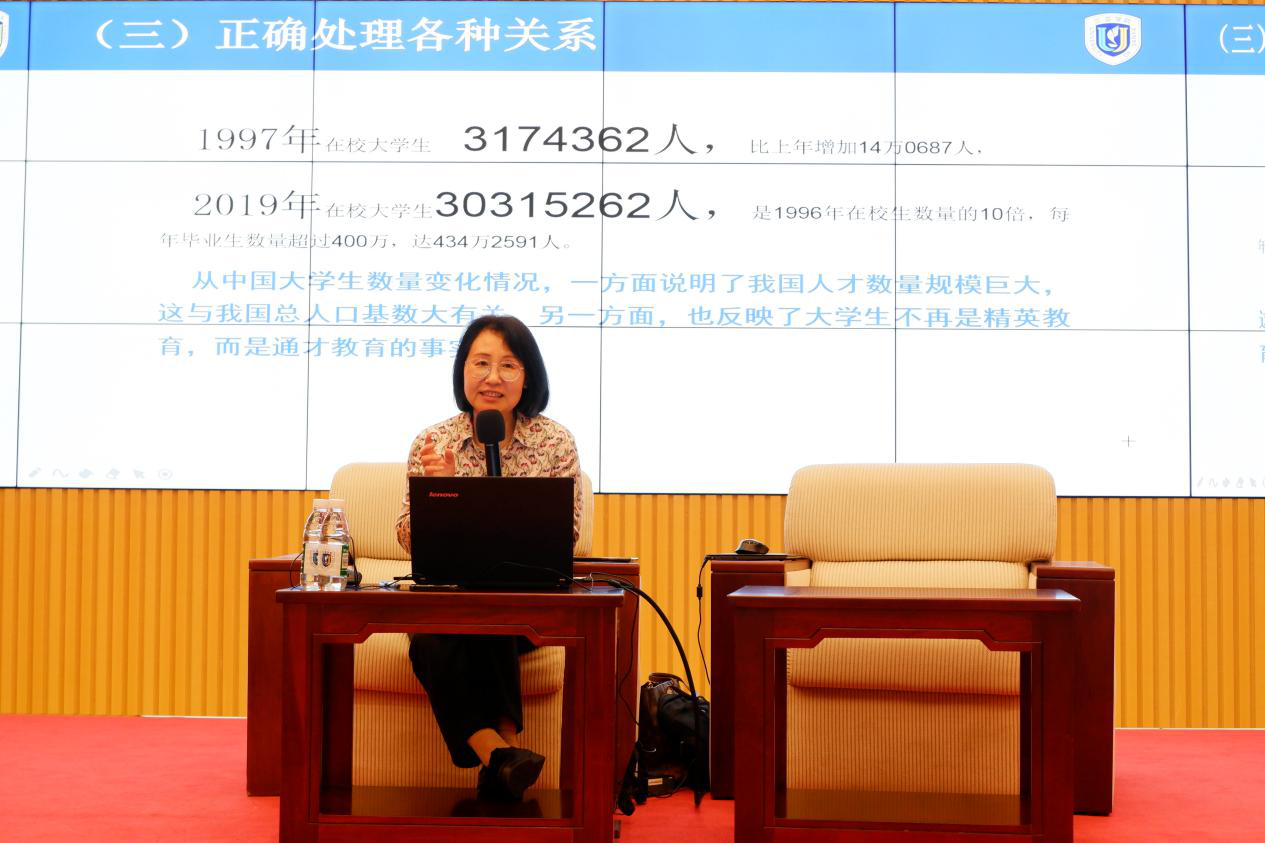 最后杨玉英院长就国家经济发展状况引出与当代大学生的密切关系,重点强调了当代大学生历史责任,大学是人生中最宝贵且最重要的阶段,但当今社会错综复杂,学生们需克服诱惑和考验,杨玉英院长希望学生们怀揣梦想、努力学习、掌握本领、应对挑战,赋予“修身齐家治国平天下”新的时代内涵,为实现中华民族伟大复兴中国梦贡献力量。讲座结尾的提问环节,杨玉英院长就学生提出的关于未来职业方向的问题为学生们答疑解惑。