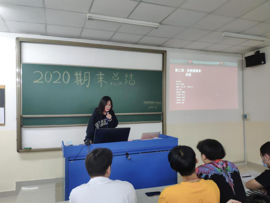 紧接着,团支书对本学期的团学工作进行总结,同时指出工作的不足之处和应予以改进的方法,向学生们展示了对未来工作的计划和安排。团支书表示在今后的工作中会保持初心,积极帮助同学们完成工作,并对配合的同学们表示感谢。随后,各级班委依次进行汇报工作,在交流环节中,同学们对自身考勤情况作出反思。