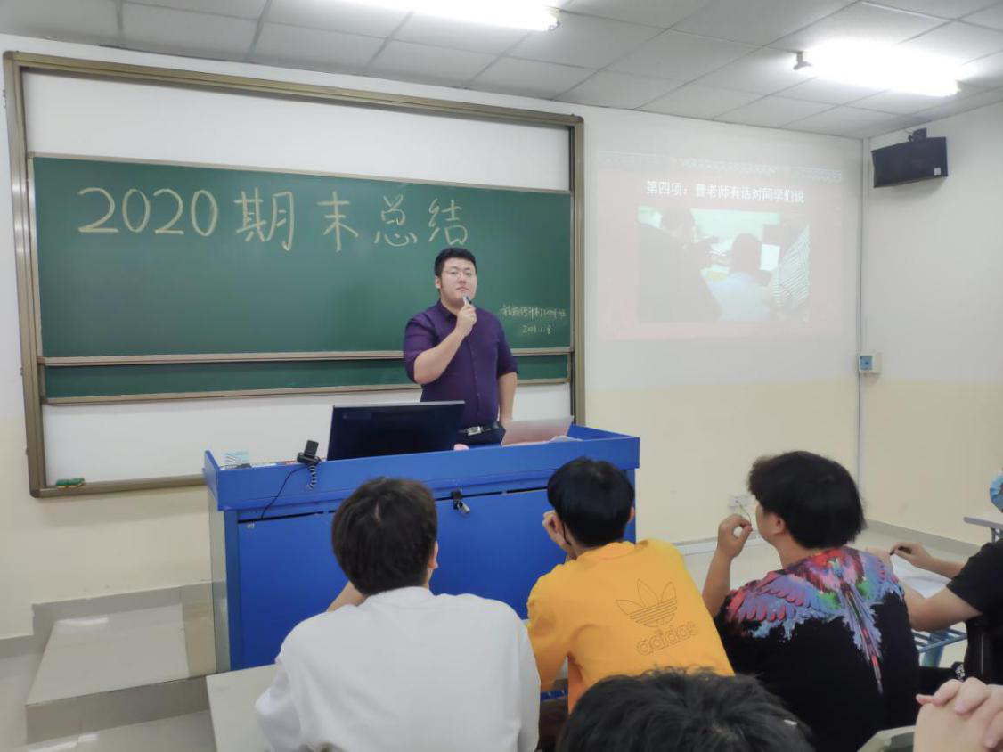 2021年1月8日,旅游(专升本)2001班在书知楼1201教室举行2020期末总结会议,思想导师曹添出席此次会议,班级全体学生积极参与。