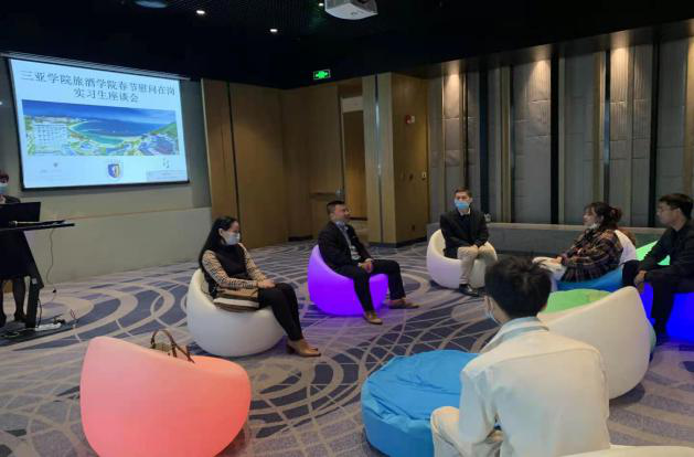 在实习单位,王书记一行仔细了解了学生的实习情况,并与酒店管理层、实习学生代表召开了实习座谈会。会上,实习生们纷纷就实习感受、体验与收获以及实习过程中存在的一些问题等向领导和老师们做了汇报和反馈。王书记认真聆听并语重心长地与学生进行交流,他从专业学习、社会实践、人际沟通、自我认知、职业规划、融入社会等层面提出了多条宝贵的经验之谈,学生们很受鼓舞。