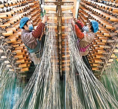 (连日来,山东省淄博市沂源县在做好疫情防控的同时,科学有序推进民营企业复工复产,带动和巩固村民就业,助力脱贫增收。图为近日,在沂源县鲁村镇一家塑编企业,工人在生产线上劳作。赵东山摄)