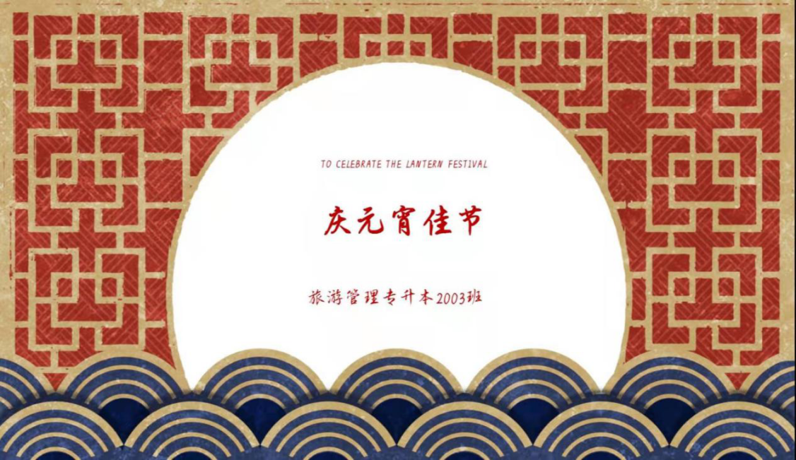 “东风夜放花千树,更吹落,星如雨。宝马雕车香满路。凤箫声动,玉壶光转,一夜鱼龙舞”这是宋代词人辛弃疾《青玉案元夕》中的诗词。在元宵这一天里,人们会与好友相约出行感受诗意,与亲人相聚互诉相思意。为了让同学们在校度佳节也能感受团圆之意,旅游管理专升本2003班和2004班全体班委精心为同学们准备了线上元宵晚会,更有精美礼物为同学们添彩助兴,全体同学积极参加。