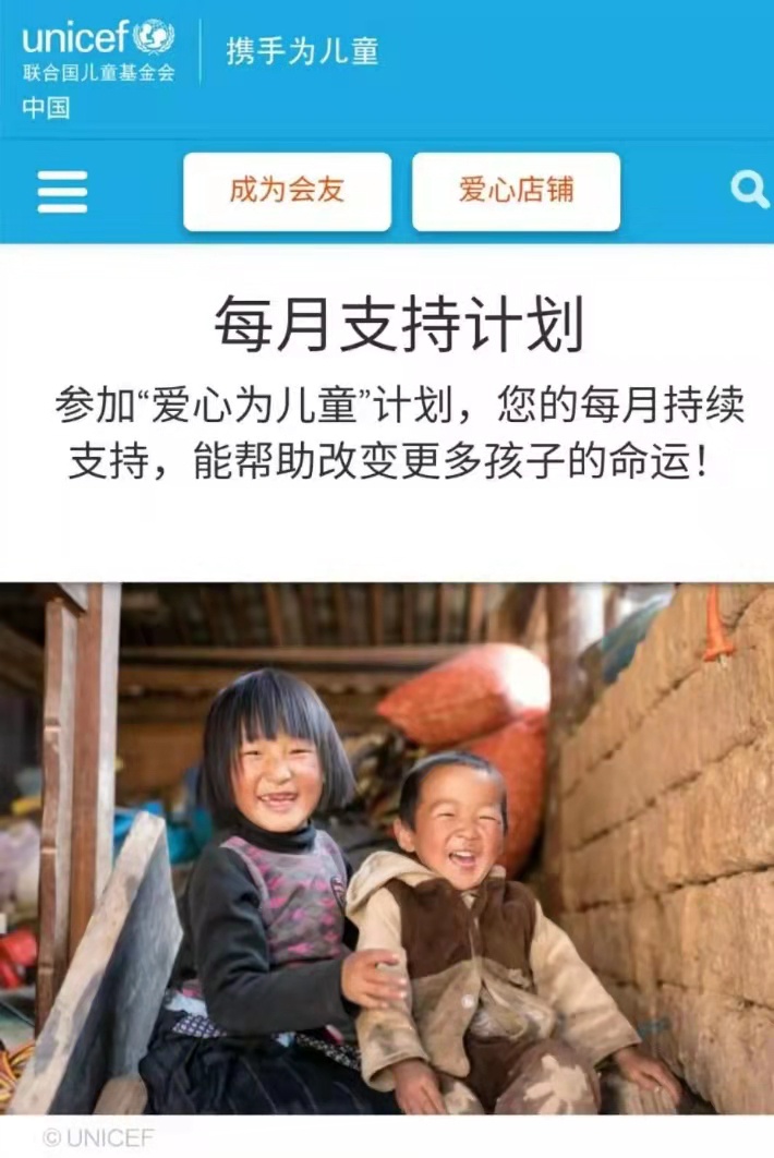 第一次了解到联合国儿童基金会还是在抖音上。当我了解到我们国家部分地区还有一些儿童生活条件极差,入学条件困难的时候,心里有些难过,于是决定为他们月捐,贡献自己的绵薄之力。我认为涓涓细流可汇聚为江海,也希望能通过这一宣传能带动更多的人去了解,去关注在时代腾飞发展下的某个角落里,有一群清澈的灵魂亟待我们的帮助。赠人玫瑰,手留余香,关注儿童的未来,就是关注我们国家的未来!