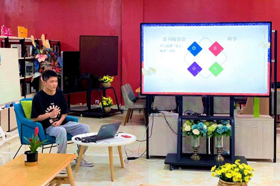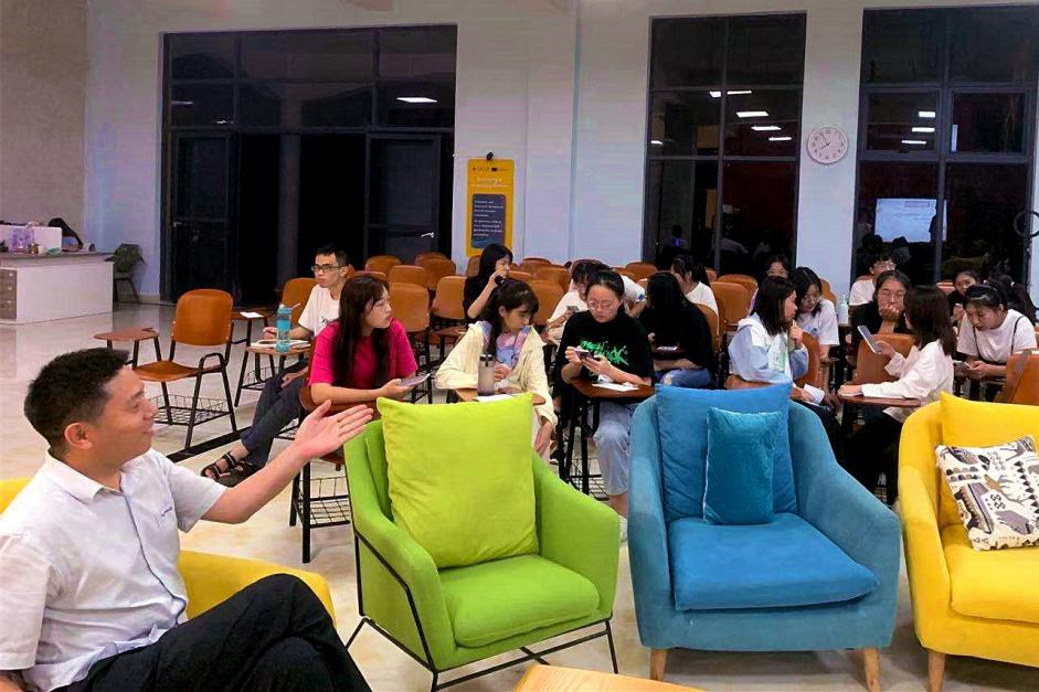 解忧学社设有六个部门,为增加部门成员间的互动,在各部长介绍了部门成员及工作职责后,接下来是部门小组讨论环节,在导师助理王盼的组织调动下,以读书阅读会、研学活动、养老院探望活动等话题展开小组讨论,讨论过程中学生们各抒己见,妙语连珠,踊跃发表自己的观点,一个个点子鱼贯而出,活动氛围热烈。