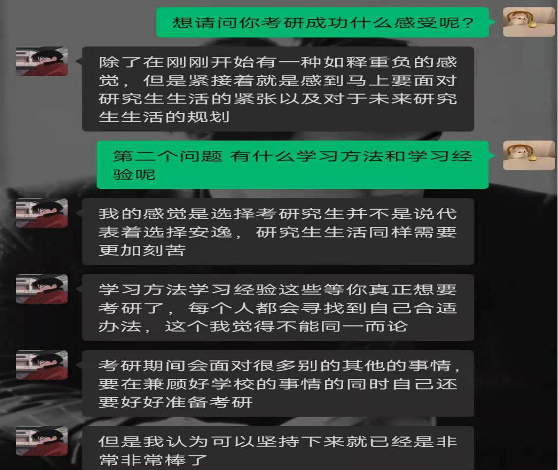 十年寒窗百日苦练何人健步登金榜,一腔热血万丈豪情我辈英才夺桂冠,刘常旭表示在当得知考研成功时会有一种如释重负的感觉,但是选择考研究生并不是说代表着选择安逸,研究生生活同样需要更加刻苦学习,对于研究生的生活以及研究生的学习规划,刘常旭有点激动和紧张,不过他相信考研是新的起点,勇敢迎接未来的新挑战,创造新的成绩,星光不问赶路人,希望在未来,对的起自己,不辜负家人。