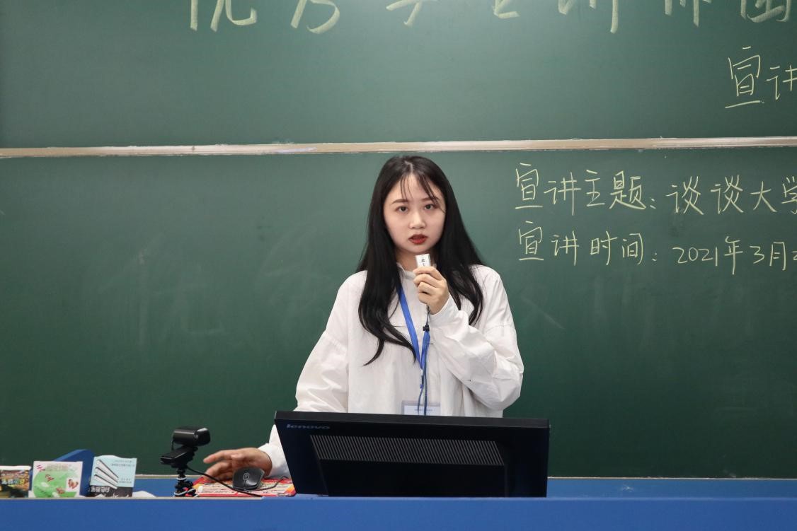 为帮助我院学生走出大学迷茫期,明确走进大学的目标,我院于3月31日下午4时在书知楼2106教室开展优秀学生代表宣讲会。邮轮1801班的学生余勤作为优秀学生讲师团代表担任本次宣讲会的宣讲人,我院学生准时到场,积极参与本次宣讲会。