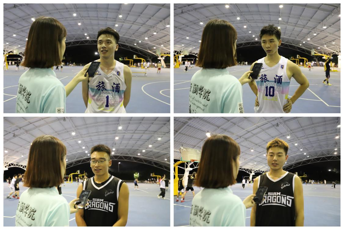 赛后,旅酒学院通讯社新闻编辑部干事对到场领导及球队队员进行了采访。王翔书记说到:“今年体育部主办的活动可以概括为挑战二字,学生挑战自己的体能,挑战自身球技,然后挑战自己的大学,使自己的大学更丰富更精彩。”吴小柳书记提到比赛中选手们都很有活力,拿出了年轻人的魄力去比赛,同时学院老师们希望在比赛时学生可以更加注意安全问题。