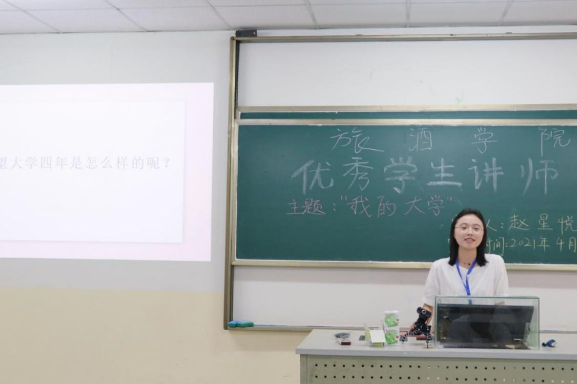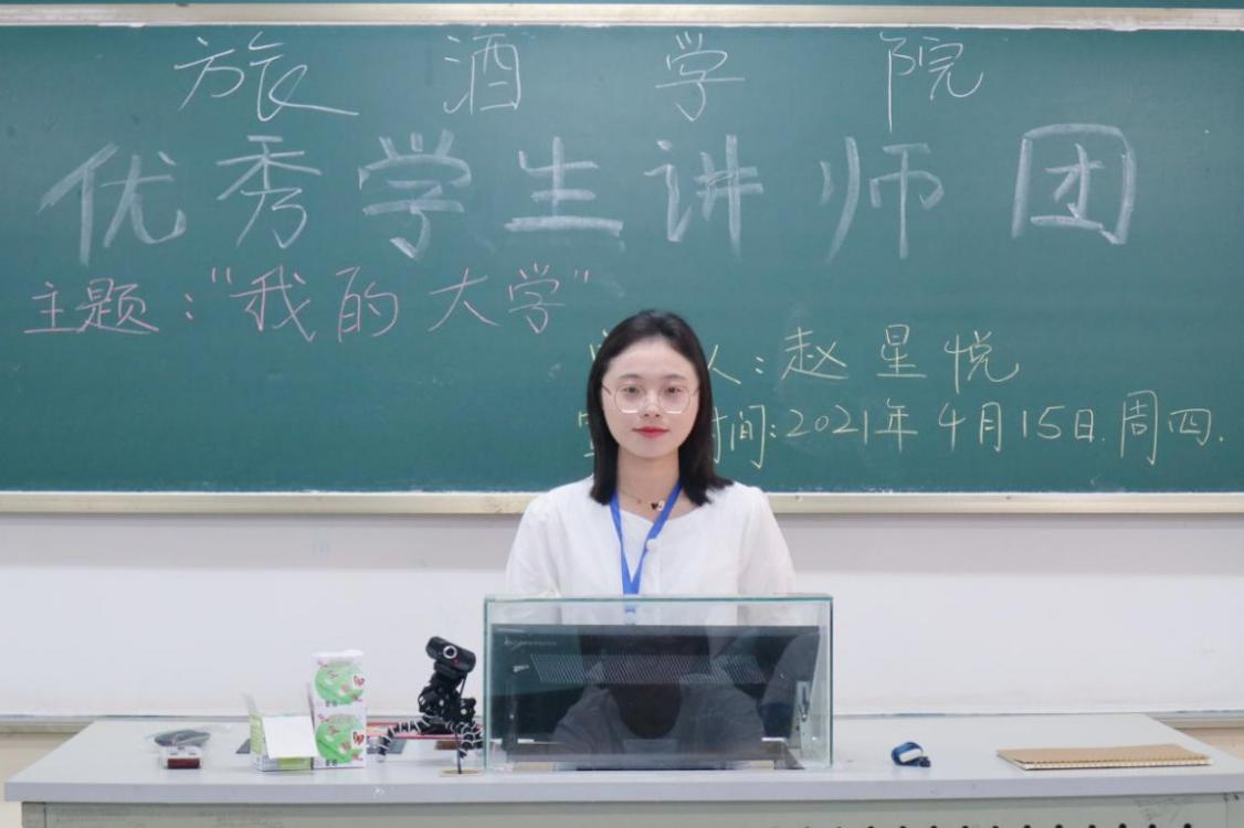 努力造就实力,态度决定高度。为加深我院学生对大学生活的认识,旅酒学院于4月15日下午4时在书知楼2105教室举行优秀学生代表宣讲会。旅行社1801班的赵星悦作为优秀学生讲师团代表担任本次宣讲会的宣讲人,参加此次宣讲会的学生积极参加、准时到场。